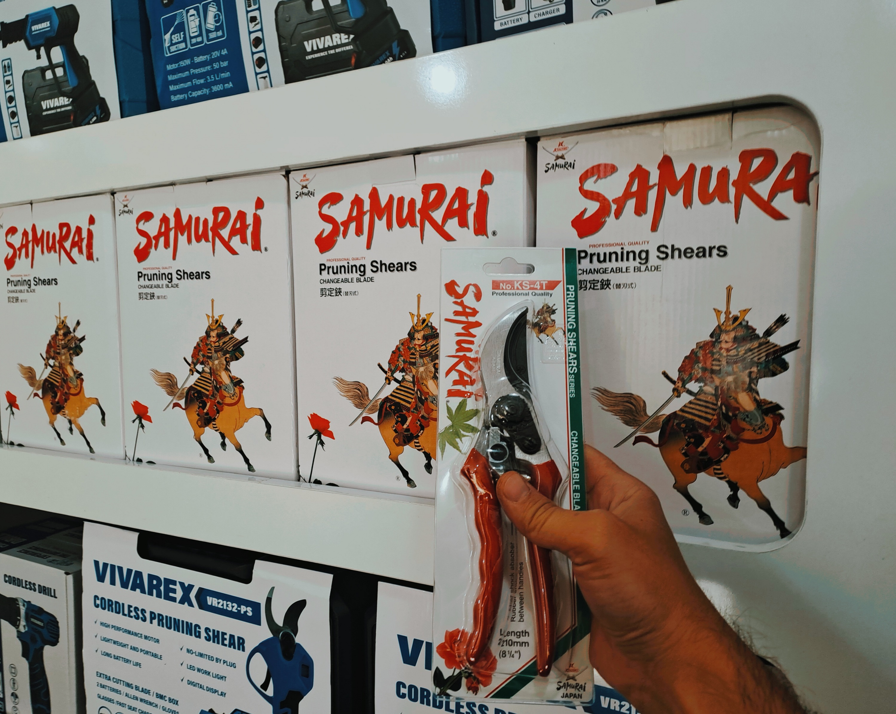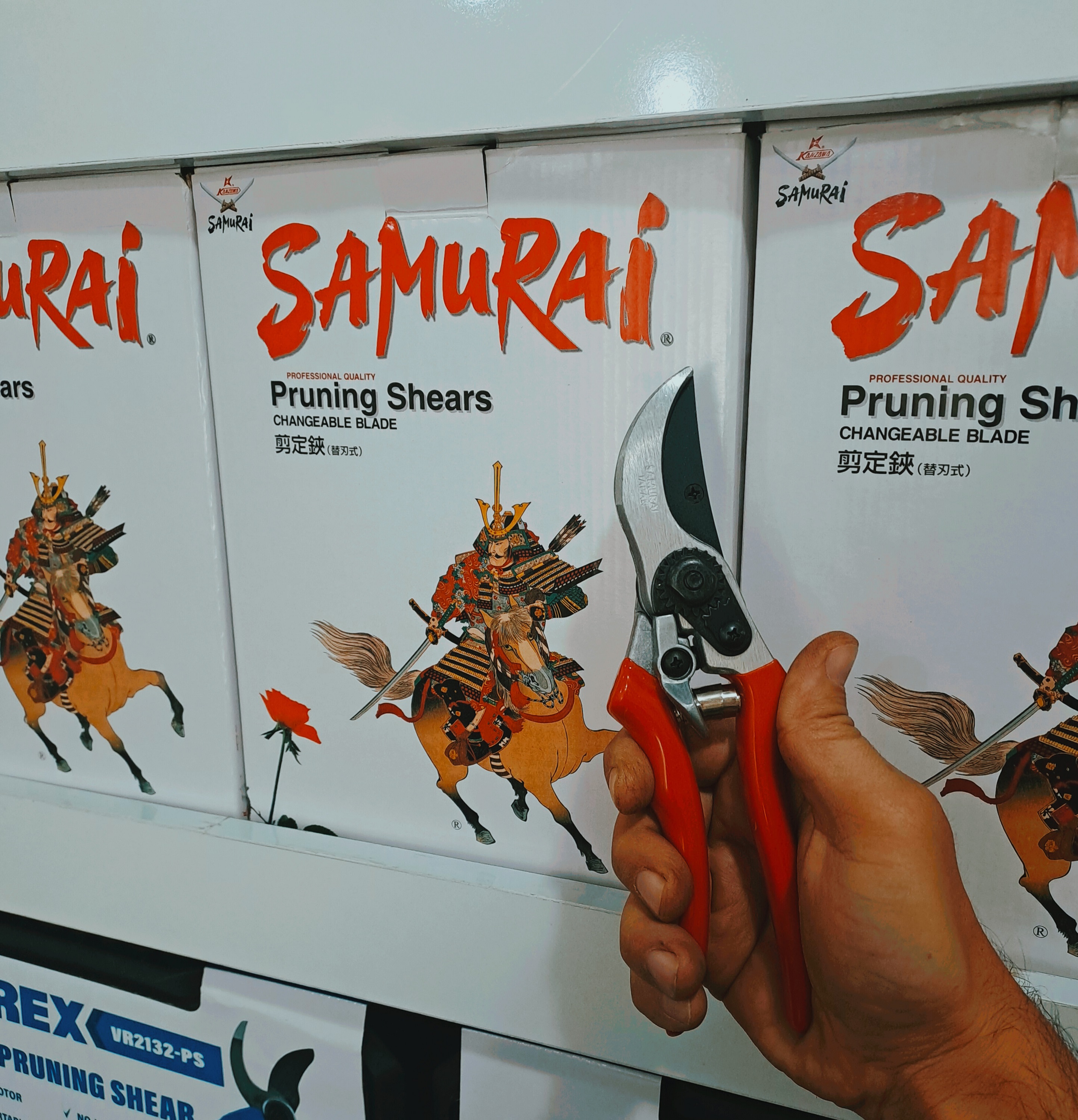 قیچی باغبانی سامورایی ساخت ژاپن ، دارای تیغه از جنس کروم است . این محصول مخصوص باغداری است و دسته هایی با روکش پلاستیکی و خطی برای برش آسان دارد و بسیار ارگونومیک طراحی شده است . تیغه ای قابل تعویض و کاملا ضد زنگ دارد که آن را از سایر برند ها متمایز می کند.