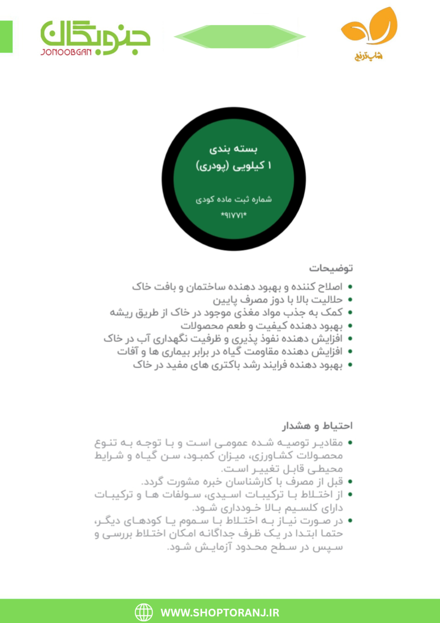 • افزایش دهنده نفوذ پذیری و ظرفیت نگهداری آب در خاک