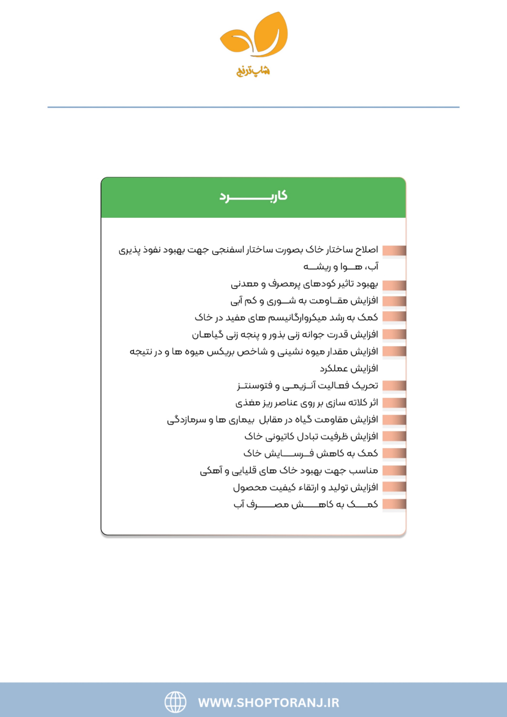 این کود میتواند به طور موثری به بهبود کیفیت خاک و افزایش عملکرد محصولات کشاورزی و افزایش مقاومت گیاهان در برابر بیماریها و آفات کمک کند.