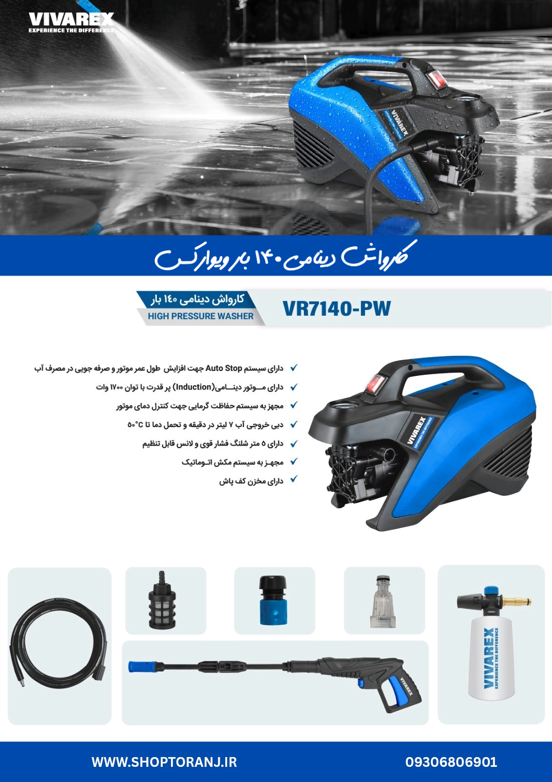 - دارای 5 متر شلنگ فشار قوی به همراه تفنگ و لانس استاندارد