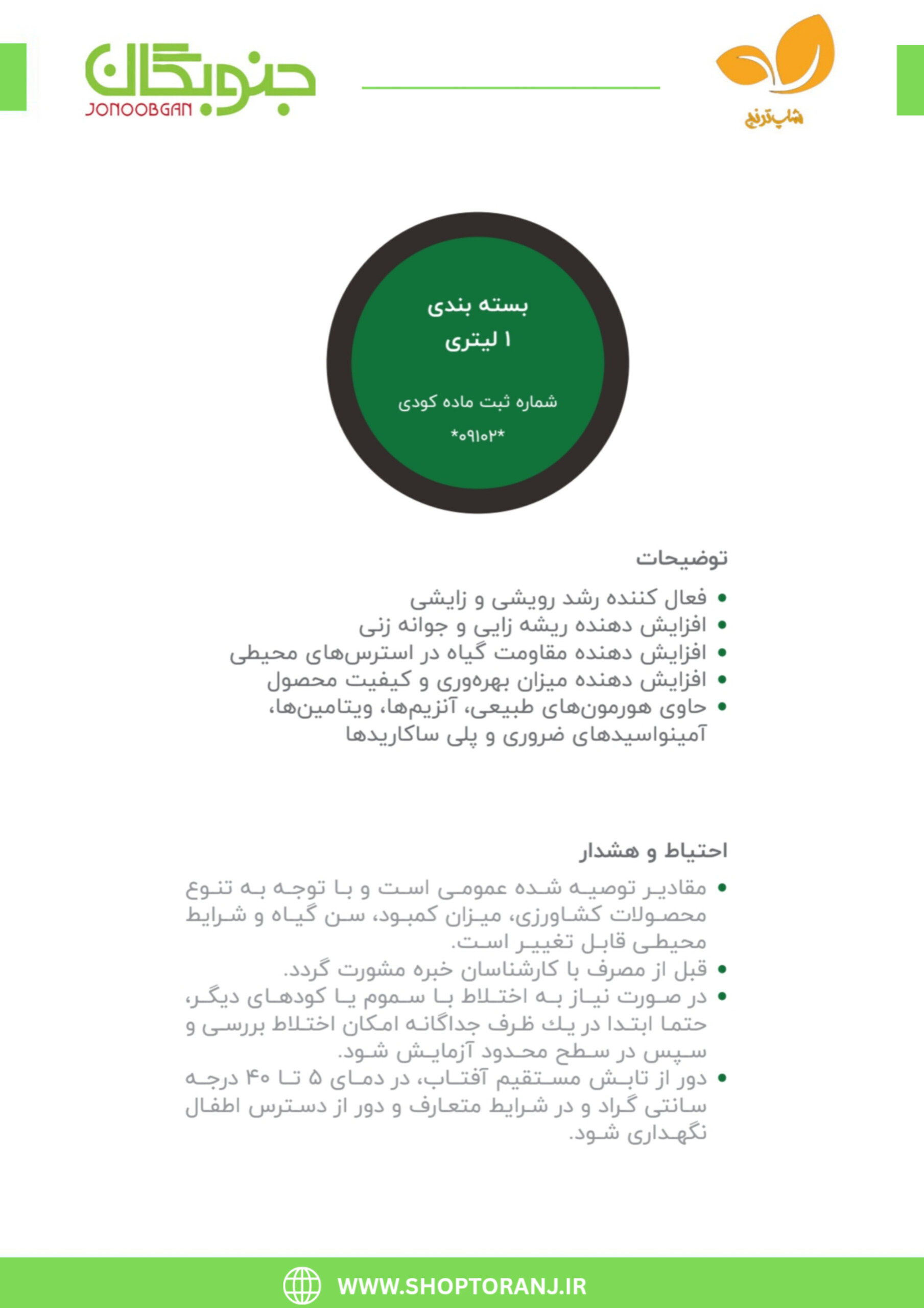 آلجینیک اسید, آمینو اسید, آهن, عصاره جلبک, فسفر, نیتروژن, پتاسیم
